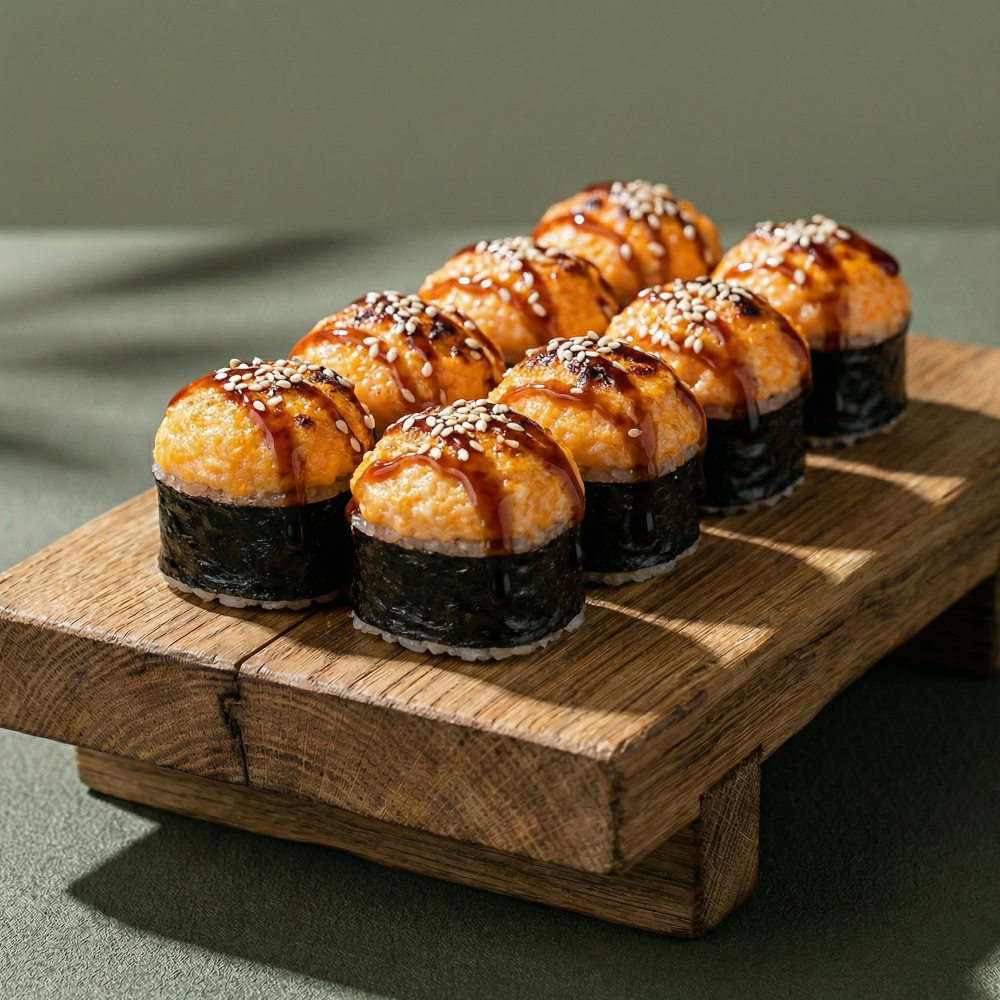 Рис, нори, красная рыба, соус спайси, соус унаги, кунжут
