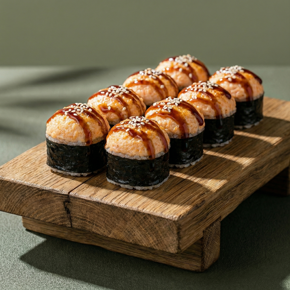 Рис, нори, тунец, соус яки, соус унаги, кунжут