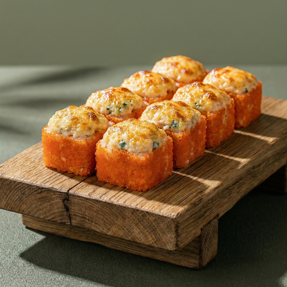 Рис, нори, сыр Cremette, курица, помидор, масаго, сыр с плесенью, соус яки