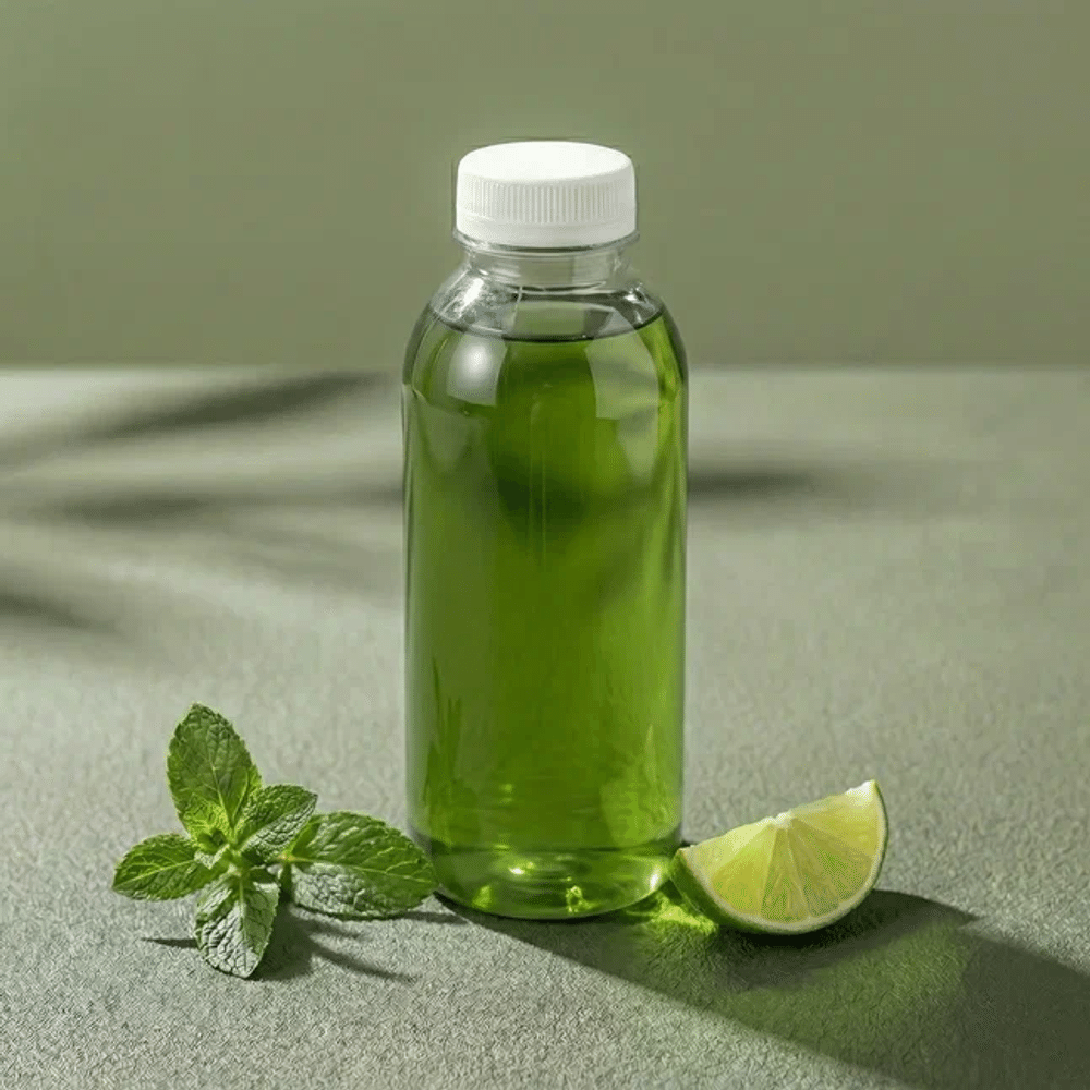 Сахар, соки концентрированные: яблочный, лимонный, лайм, вода, ароматизаторы, мята сушеная, консервант, краситель хлорофилл, экстракт сафлора. Морс собственного приготовления